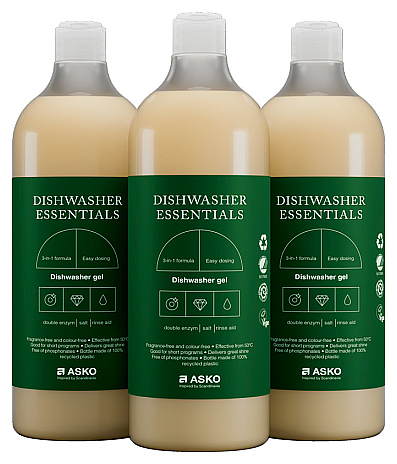 Гель ASKO LD10 используется совместно с посудомоечными машинами для мытья посуды. Высокоэффективная формула 3 в 1 включает в себя жидкость для мытья посуды, ополаскиватель и соль для смягчения воды. Средство поставляется во флаконе из полупрозрачного пластика, изготовленного на 100% из переработанного сырья. Особенности: