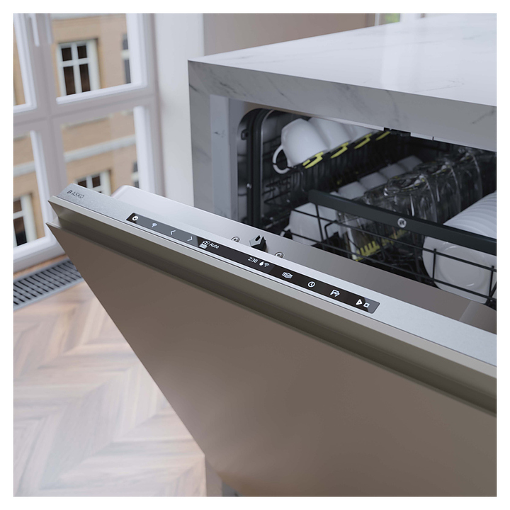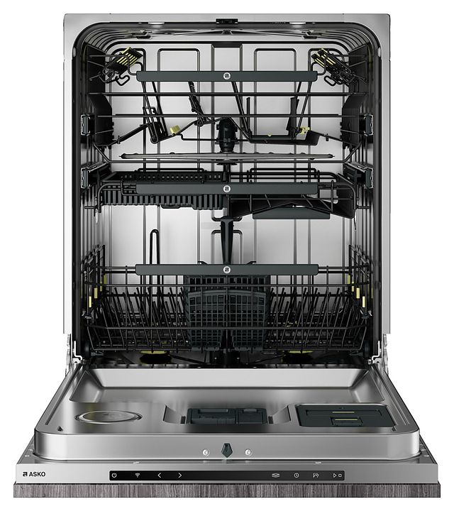 Встраиваемая посудомоечная машина ASKO DFI747MUпредназначена для гигиенической обработки и последующей сушки различной посуды в домашних условиях. Модель оснащена бесщеточным электродвигателем (BLDC), 2 разбрызгивателями, узлом фильтров, кабелем питания с евровилкой, откидной дверью и расположенной на верхнем торце двери сенсорной панелью управления с полноцветным TFT дисплеем (Style). Прочная конструкция 8 Steel: 8 основных компонентов, включая внутреннюю облицовку и разбрызгиватели, выполнены из высококачественной нержавеющей стали, корпусы корзин – из стали с износостойким нейлоновым покрытием, заливной шланг – из сшитого полиэтилена (PEX), фронт с ультратонким бесцветным покрытием TouchProof для защиты от загрязнений и жира.