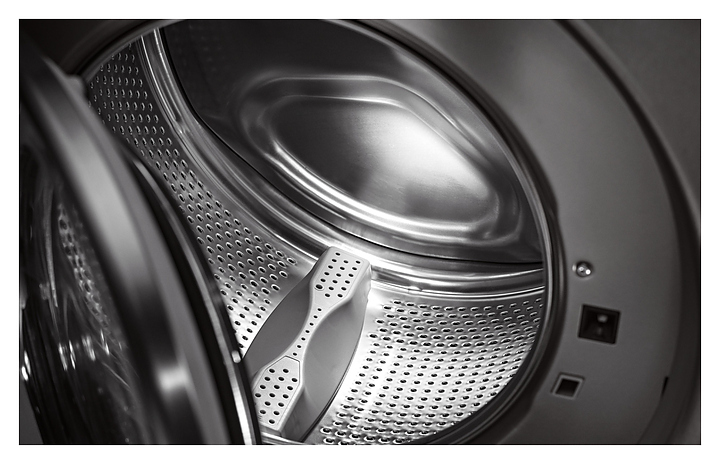 Конструкция барабана Active Drum с лопастями в форме песочных часов для эффективной бережной стирки благодаря направленному перемещению белья к середине, а крупных частиц загрязнений к отверстиям у края