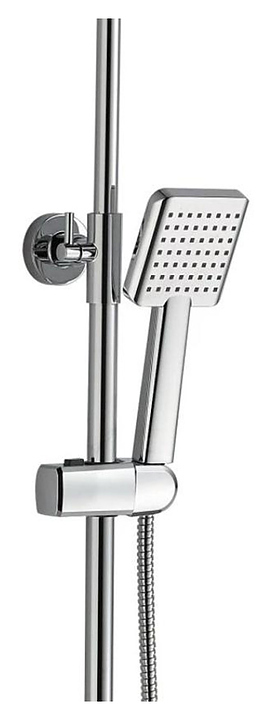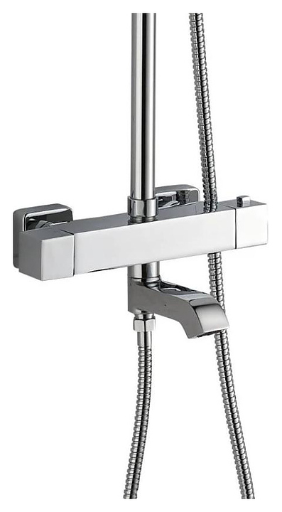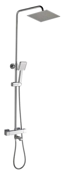 Душевая стойка Haiba HB2422 предназначена для использования в ванных помещениях. Модель оснащена квадратными верхним душем и ручной лейкой. Термостатический картридж гарантирует подачу воды заданной температуры, что исключает ожоги. Изделие выполнено из латуни, отличающейся прочностью, долговечностью и устойчивостью к перепадам температуры, шланг - из металла. В комплект поставки входят верхний душ, штанга, держатель душевой лейки, ручной душ, смеситель и шланг. Особенности: