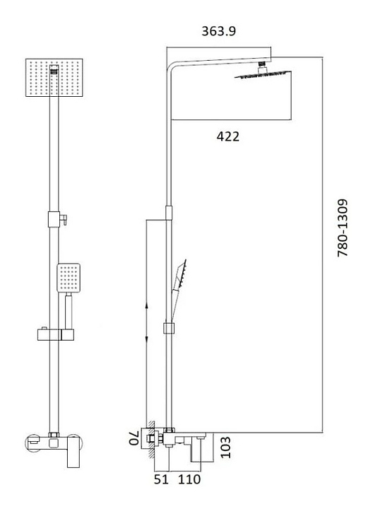 Душевая стойка Haiba HB24803-7 предназначена для использования в ванных помещениях. Модель оснащена квадратным верхним душем и прямоугольной ручной лейкой. Керамический картридж обеспечивает плавный ход рычага смесителя, контроль и точность при выборе напора и температуры воды. Изделие выполнено из латуни, отличающейся прочностью, долговечностью и устойчивостью к перепадам температуры, шланг - из металла. В комплект поставки входят верхний душ, штанга, держатель душевой лейки, ручной душ, смеситель и шланг. Особенности:
