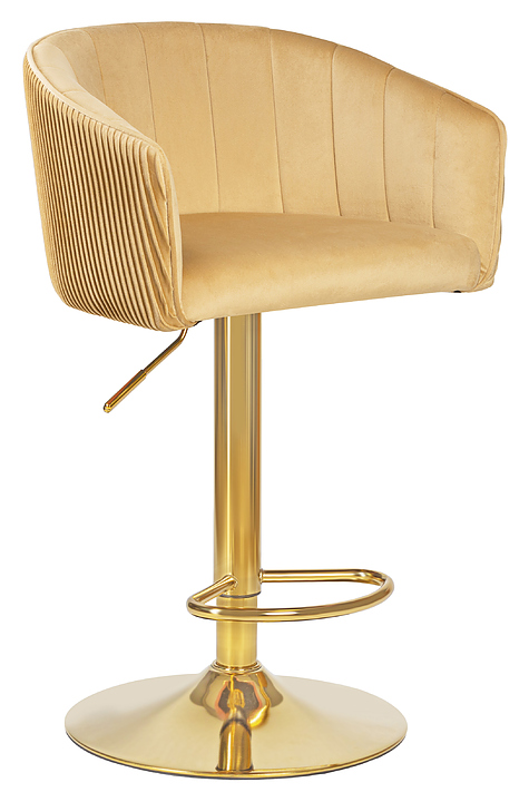 Барный стул DOBRIN 5025_GoldBase-LM DARCY GOLD предназначен для обустройства барной зоны в кухнях, столовых, гостиных, а также в кафе и ресторанах. Модель оснащена основанием в виде диска, мягким вращающимся сиденьем фигурной формы, механизмом регулировки высоты газлифт, эргономичной мягкой спинкой, которая оказывает хорошую поддержку, подлокотниками и подставкой для ног. Каркас изготовлен из комбинированного материала, основание - из металла, обивка - из велюра. Изделие выполнено в современном стиле, имеет устойчивую конструкцию и поставляется в разобранном виде. Простая сборка. Дополнительные характеристики: