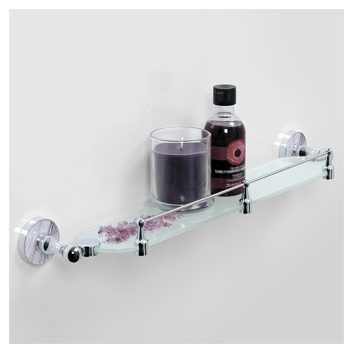 Полка стеклянная с бортиком Wasserkraft Aland K-8544 вставка под мрамор, хром