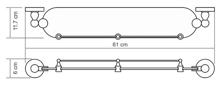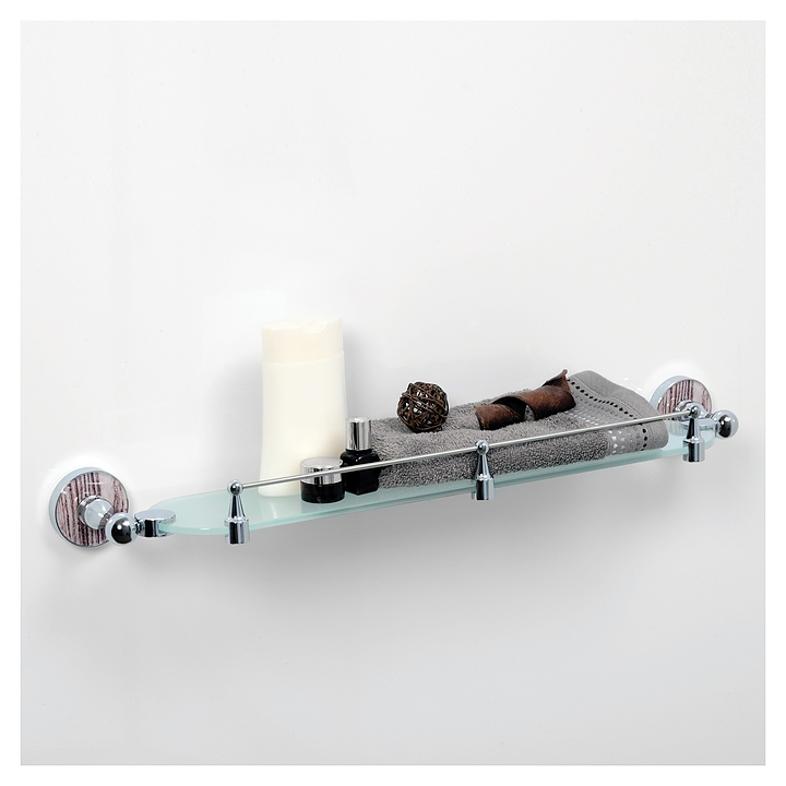 Полка стеклянная с бортиком Wasserkraft Regen K-6944 вставка под дерево, хром
