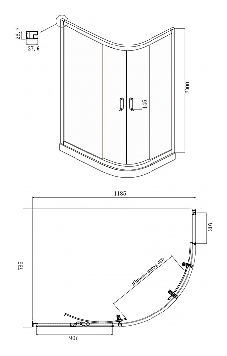 Уголок душевой Ambassador Royal 18015101 120х80 см