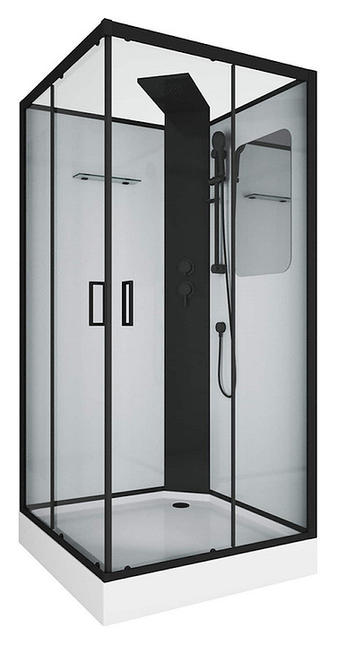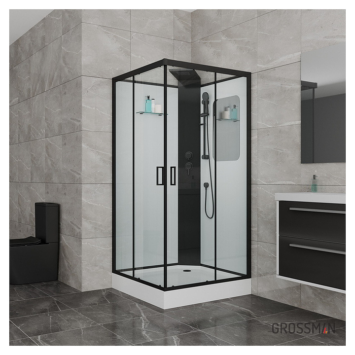 Душевая кабина Grossman Elegans GR251Q предназначена для использования в ванных комнатах. Модель оснащена бесшумными двойными верхними и нижними роликами из нержавеющей стали в пластиковом антикоррозийном кожухе. Невысокий поддон и две раздвижные двери позволяют комфортно входить и выходить из кабины. Для безопасности пользователя внутренняя поверхность поддона имеет нескользящее покрытие, а стенки и двери выполнены из закаленного стекла. Внутри кабины верхний и ручной душ, зеркало, интегрированное в заднюю стенку. Наличие полки обеспечивает максимальный комфорт при приеме душа, размещаяя на ней необходимые мыльные принадлежности. Поддон выполнен из акрила, устойчивого к механическим повреждениям, обладающего небольшим весом и повышенной шумоизоляцией. В комплект поставки входят душевая кабина, поддон, полочка, зеркало, ручной душ 150 см со штангой, верхний душ, сифон, смеситель. Особенности: