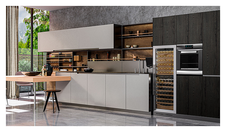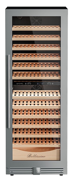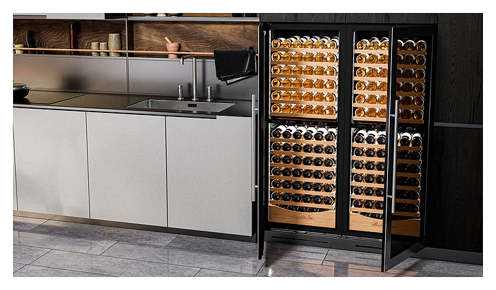 Винный шкаф MEYVEL MV141PRO-KST2 предназначен для демонстрации, хранения и создания оптимальных условий для сохранения всех вкусовых свойств вина в бутылках на предприятиях общественного питания, торговли, в барах, ресторанах, специализированных магазинах, частных домах или квартирах. Модель оснащена сенсорной панелью управления, электронным термостатом, понорамной светодиодной подсветкой, замком, угольным фильтром, 12 выкатными полками и регулируемыми по высоте ножками. Корпус выполнен из окрашенной в черный цвет стали, дверь - из тройного стеклопакета с УФ защитой, полки - из массива бука. Особенности:
