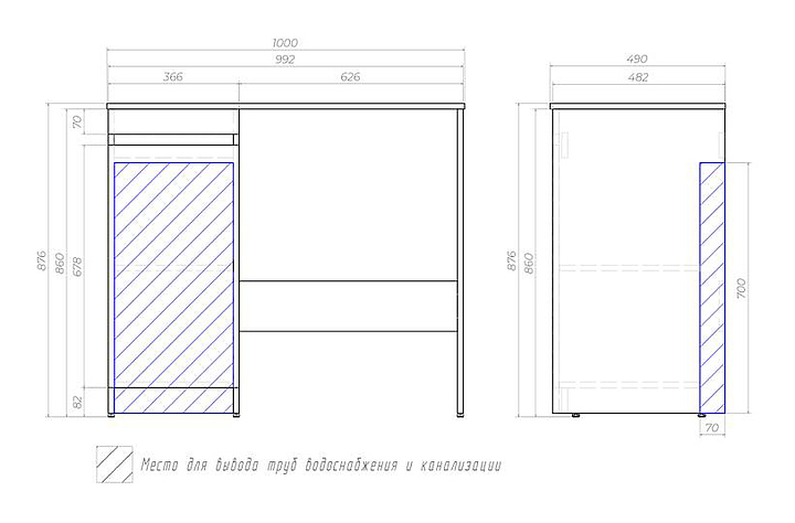 Тумба под раковину VIGO Urban tn.URB.40.1D+st.URB.100 100 см, со столешницей
