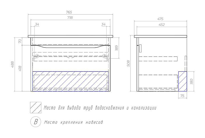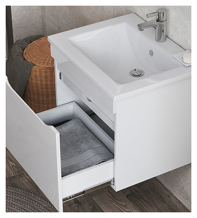 Тумба под раковину VIGO Grani tp.GRI.OSK.75.1Y выполнена в современном стиле и прекрасно дополнит интерьер любой ванной комнаты. Благодаря подвесной конструкции модель не занимает много места и облегчает уборку. Тумба оснащена интегрированной ручкой, выдвижным ящиком и органайзером внутри. Фасад выполнен из ЛМДФ с пленкой ПВХ, корпус - из ЛДСП с покрытием ламинат. Тумба используется с раковиной Kirovit Оскар 750.