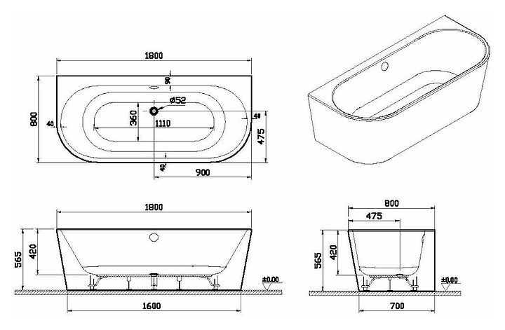 Ванна Vitra Geo 65420006000 легко вписывается в интерьер любой ванной комнаты. Изделие выполнено из акрила, который обладает высокой теплоёмкостью, долго не позволяя воде остывать, и способностью поглощать шум при наборе воды, на этой ванне не появляются царапины, она не темнеет и не ржавеет. Ножки выполнены из нержавеющей стали. В комплект поставки входят ванна, ножки и скрытый сифон. Особенности: