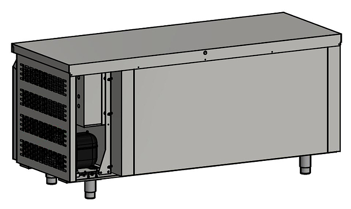 Морозильный стол Техно-ТТ СПБ/М-122/31-2207 предназначен для раскатки теста, обработки, заморозки и долговременного хранения продуктов, полуфабрикатов, напитков и мороженого на предприятиях общественного питания и торговли. Модель оснащена 3 секциями с 3 дверьми и регулируемой полкой-решеткой, 1 секцией с ящиком, направляющими с доводчиками (Австрия), петлями-доводчиками (Польша) и круглыми ножками, регулируемыми по высоте на 50 мм (Италия). Корпус и столешница выполнены из нержавеющей стали AISI 430, задняя стенка и дно - из оцинкованной стали. Стол поставляется в собранном виде. Особенности: