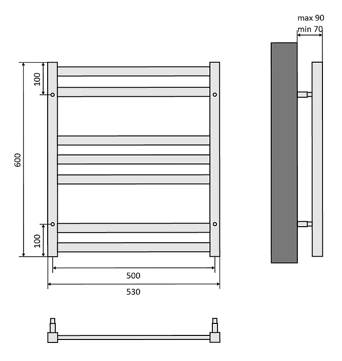 Полотенцесушитель водяной Aquatek Поларис П7 50х60 см, черный муар