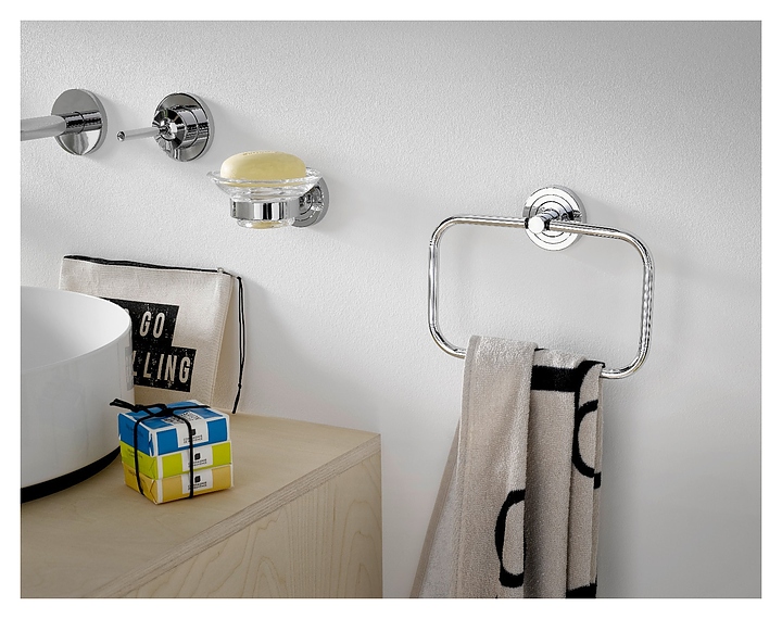 Полотенцедержатель-кольцо EMCO Polo используется в ванных комнатах для размещения тканных полотенец. Серию Polo отличают современный дизайн, функциональность и доступность. Модель имеет скрытые крепления и монтируется на стену. Изделие выполнено из металла. Особенности: