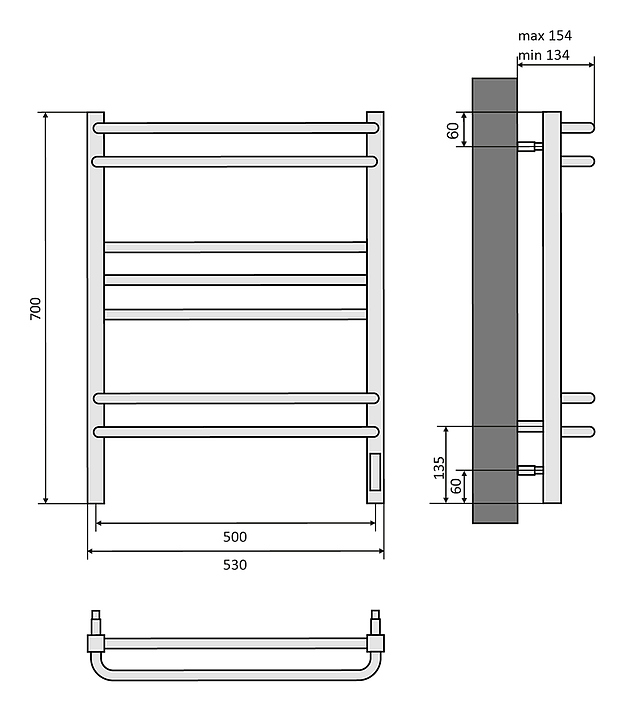 Электрический полотенцесушитель Aquatek Бетта П7 предназначен для подогрева и сушки полотенец, а также для обогрева ванных комнат в квартирах, коттеджах и частных домах. Модель оснащена таймером и диммером справа. Изделие выполнено из нержавеющей стали, отличающейся прочностью, долговечностью и устойчивостью к коррозии. В комплект поставки входят полотенцесушитель, съемная кабель-вилка, 2 втулки-переходника для подключения, 4 крепления к стене и шестигранный ключ. Особенности: