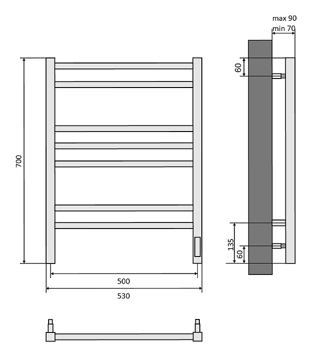 Электрический полотенцесушитель Aquatek Альтаир П7 предназначен для подогрева и сушки полотенец, а также для обогрева ванных комнат в квартирах, коттеджах и частных домах. Модель оснащена таймером и диммером справа. Изделие выполнено из нержавеющей стали, отличающейся прочностью, долговечностью и устойчивостью к коррозии. В комплект поставки входят полотенцесушитель, съемная кабель-вилка, 2 втулки-переходника для подключения, 4 крепления к стене и шестигранный ключ. Особенности: