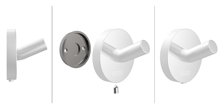 Крючок EMCO Round используется в ванных комнатах для размещения банных халатов и полотенец. Серию Round отличают округлые формы и геометрический дизайн. Модель имеет скрытые крепления и монтируется на стену. Изделие выполнено из металла. Особенности: