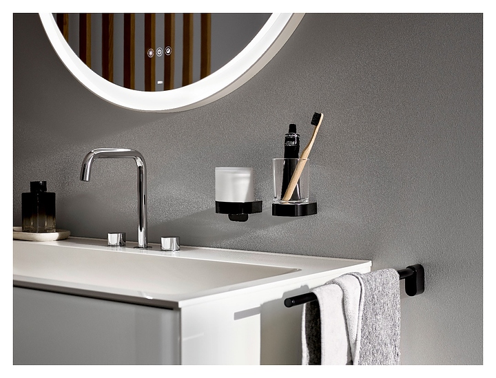 Держатель EMCO Flow предназначен для размещения зубных щеток в ванной комнате. Серию Flow отличают стильный и современный дизайн, благодаря чему она идеально впишется в любой интерьер. Модель монтируется на стену. Модель оснащена держателем и стаканом для зубных щеток, имеет скрытые крепления и монтируется на стену. Изделие выполнено из металла и матового стекла. Особенности: