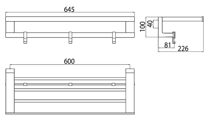 Полка для полотенец с полотенцедержателем EMCO Loft c 3 крючками, хром