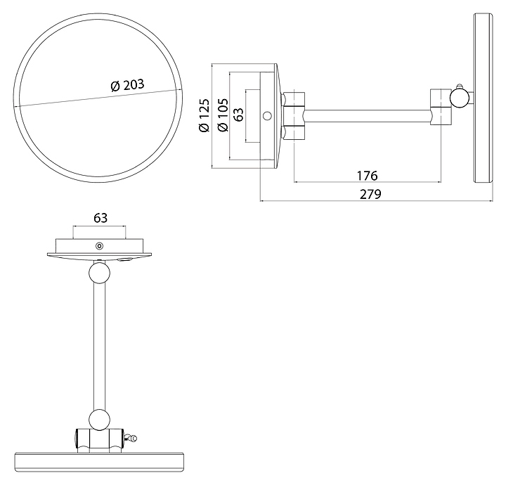 Зеркало косметическое настенное EMCO Pure 20,3 см, с LED-подсветкой, 3х-увеличение, черный