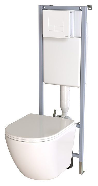 Унитаз Taliente KIT-Amato AM25010+10011945+31191010 выполнен в современном стиле и легко впишется в интерьер любого санузла. Благодаря подвесной конструкции модель не занимает много места в помещении, а свободное пространство под чашей делает уборку гораздо легче. Безободковое исполнение позволяет предотвратить скопление бактерий и грязи на внутренней поверхности чаши и обеспечивает ее чистоту и гигиеничность использования. Изделие выполнено из фаянса, который обладает повышенной прочностью и устойчивостью к негативным внешним факторам, а также не впитывает запахи и грязь, крышка-сиденье - из пластика. В комплект поставки входят унитаз с крышкой Amato AM25010, инсталляция без кнопки BCM 536 Aqua+ 10011945 и кнопка смыва Smarty 31191010. Особенности: