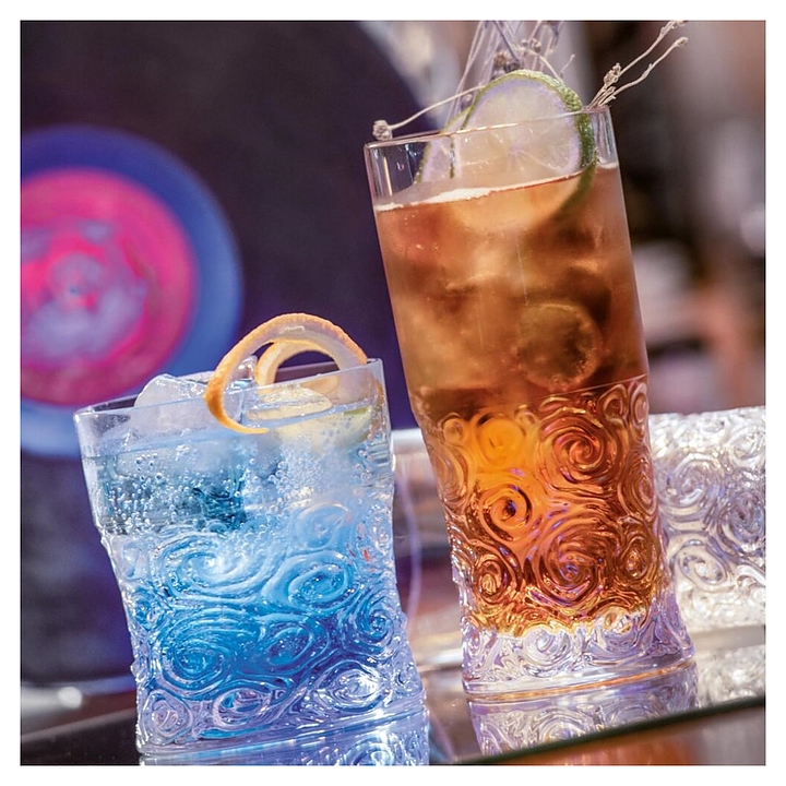 Стакан Хайбол RCR Cristalleria Sound Soul 26981020006 используется на предприятиях общественного питания и в домашних условиях для подачи коктейлей с содовой и других напитков. Высокая емкость круглого сечения оснащена двухуровневым бортом – наполовину гладким в верхней части и суженным в основании с вдохновленным музыкой стиля соул декоративным рельефным узором в виде причудливых спиралей, текстурная поверхность приятна на ощупь и обеспечивает стабильный захват. Изделие выполнено из высококачественного хрустального стекла Luxion. Особенности: