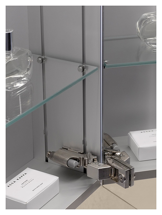 Зеркальный шкаф EMCO Pure выполнен в современном стиле и отлично дополнит интерьер любой ванной комнаты. Благодаря подвесной конструкции модель не занимает много места, что позволяет экономить пространство в небольшой ванной комнате. Модель оснащена двумя распашными зеркальными с обеих сторон дверцами с доводчиками для плавного закрывания, 2 регулируемыми по высоте стеклянными полками, верхней встроенной светодиодной LED подсветкой, розеткой и выключателем. Изделие выполнено из анодированного алюминия и хрустального стекла. Нижняя подсветка на раковину в комплект поставки не входит и приобретается отдельно. Особенности: