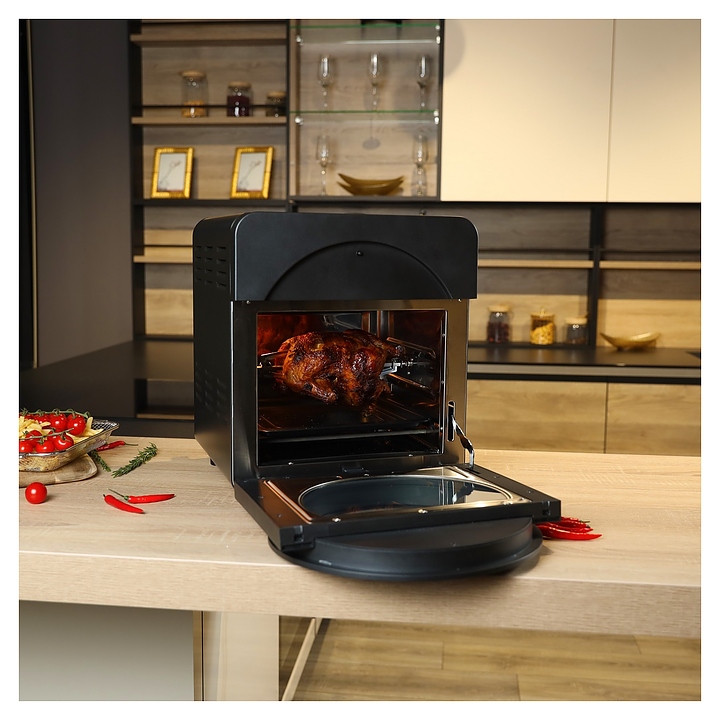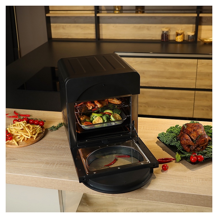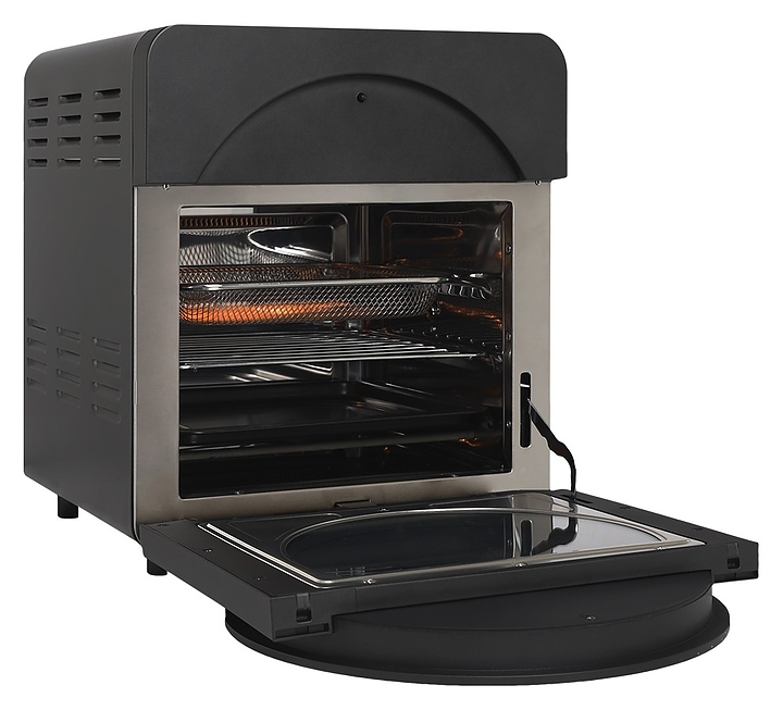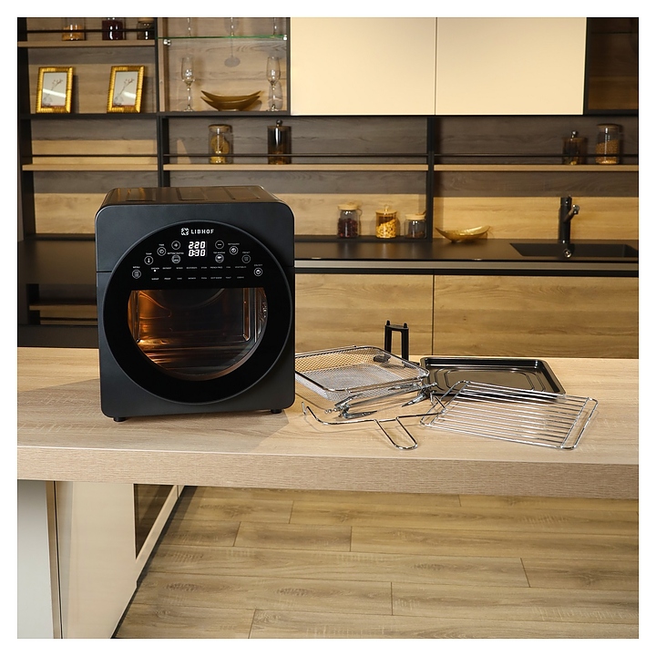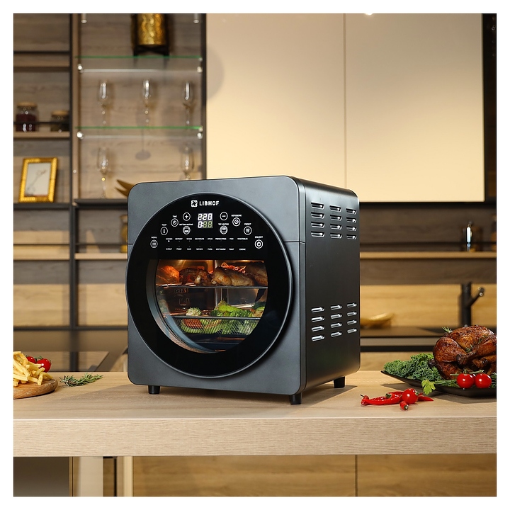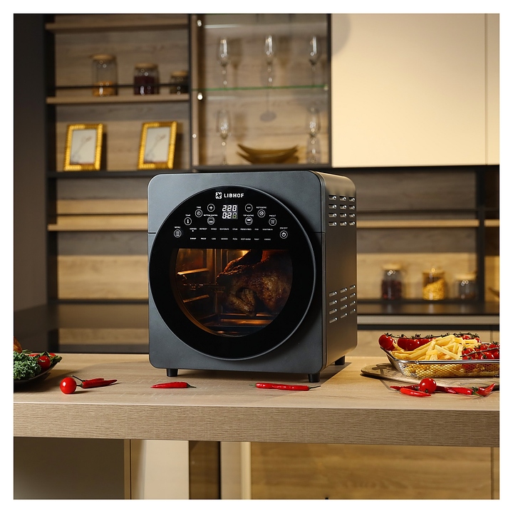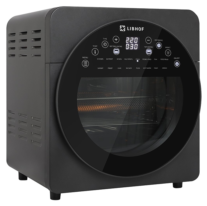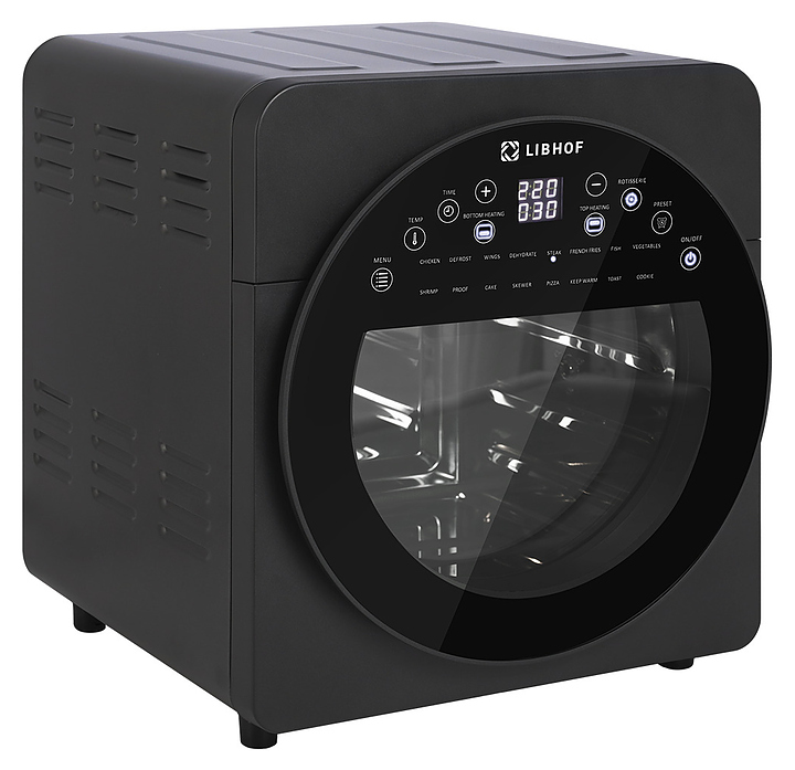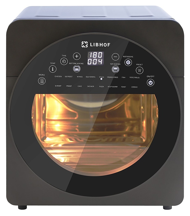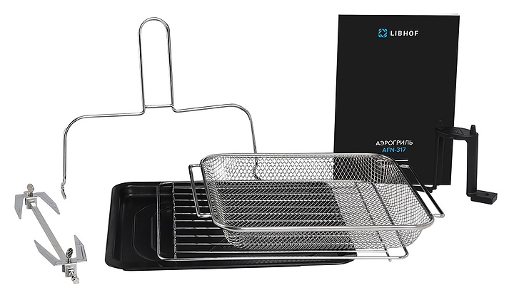 Аэрогриль Libhof AFN-317 используется на предприятиях общественного питания и торговли, в частных домах и квартирах для приготовления пищи без использования масла и жира. Модель оснащена сенсорной панелью управления и мощным нагревательным элементом. Корпус выполнен из металла, внутреннее покрытие - из нержавеющей стали. В комплект поставки входят поддон для капель, вилка для гриля, ручка вертела и решетка. Особенности: