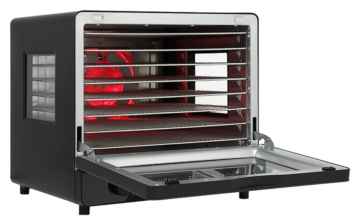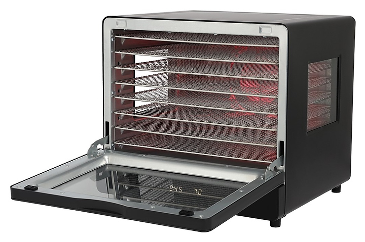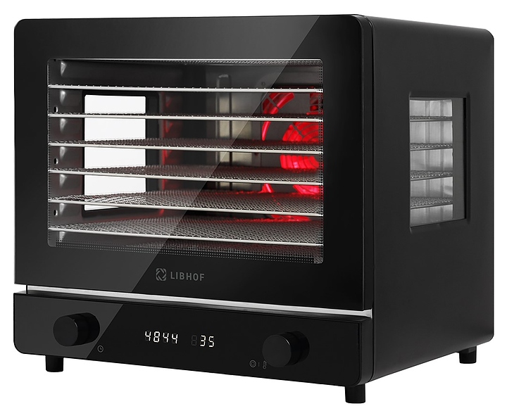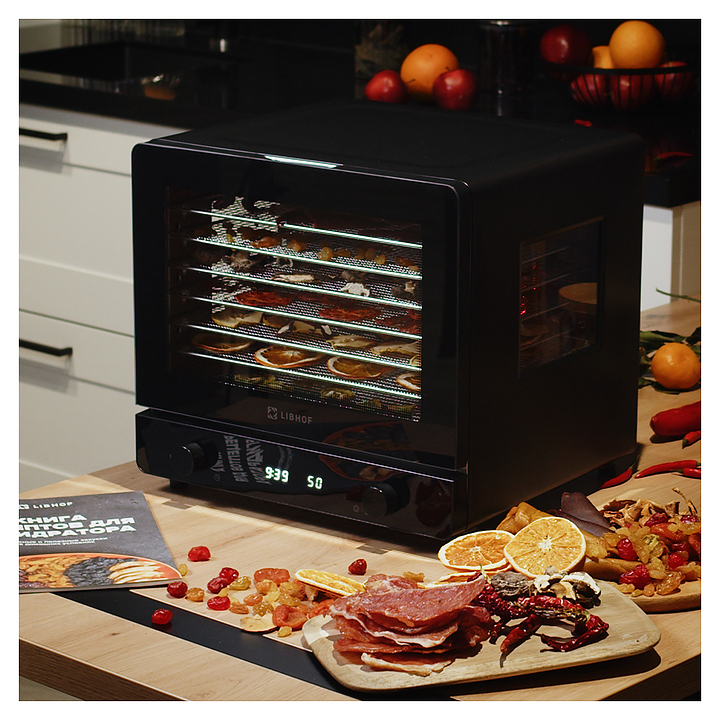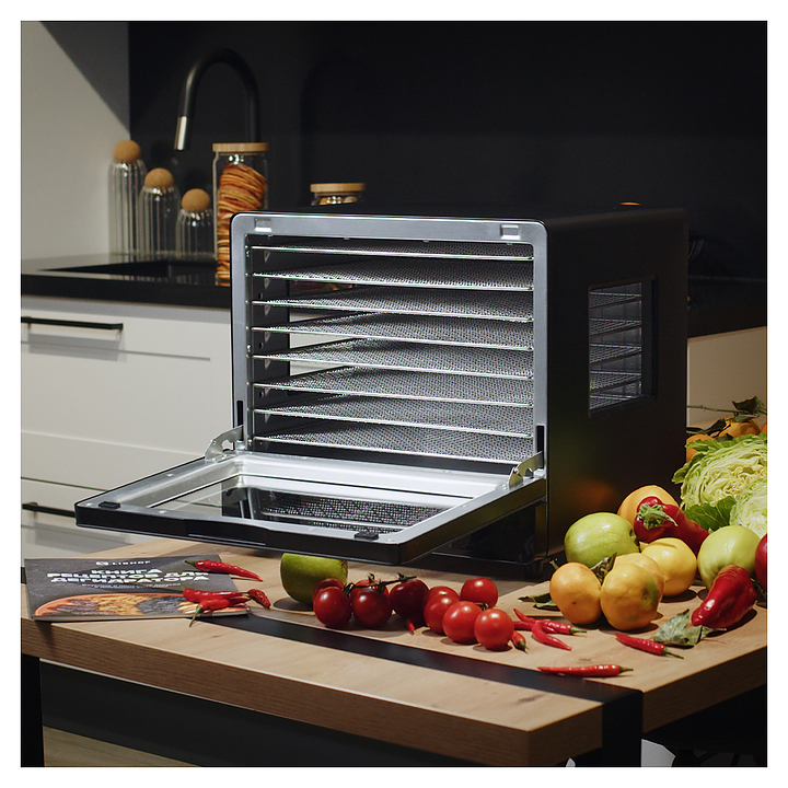 Дегидратор Libhof FDX-08 используется для сушки овощей, фруктов, ягод, грибов и трав, а также вяления рыбы, расстойки теста, приготовления сухариков, пастилы и йогурта в домашних условиях. Модель оснащена электронной панелью управления с дисплеем и таймером. Корпус устройства выполнен из металла. В комплект поставки входят 8 лотков из нержавеющей стали. Особенности: