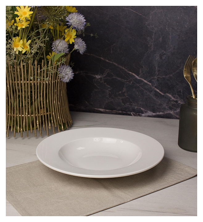 Глубокая тарелка Ariane Prime 30 см используется на предприятиях общественного питания и торговли. Посуда отличается высокой прочностью, устойчива к механическим повреждениям, царапинам и сколам, выдерживает значительные перепады температур, что позволяет использовать ее в духовых шкафах, микроволновых печах и посудомоечных машинах. Изделие выполнено из высококачественного фарфора, произведенного из высокосортного глиноземистого материала, полностью покрытого специальной глазурью, обожженной при высоких температурах. Особенности: