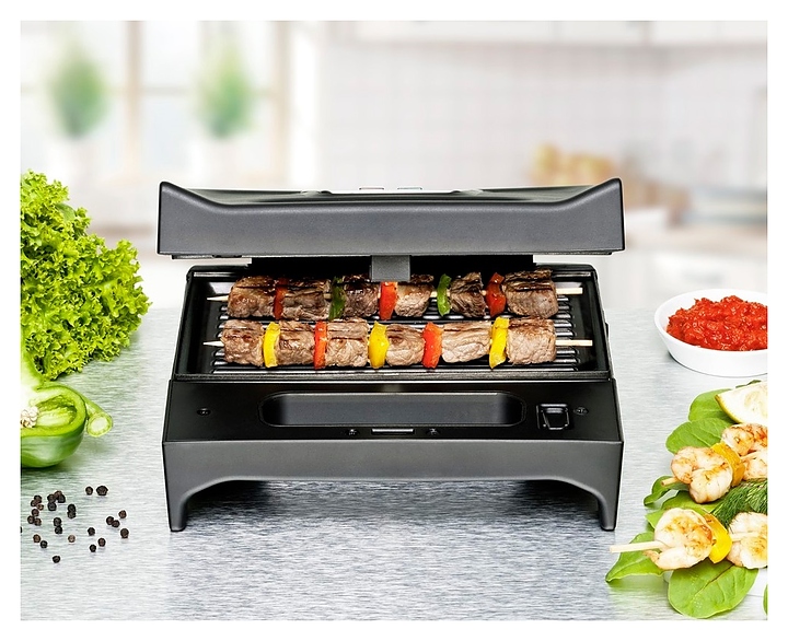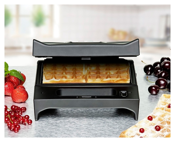 Сэндвич-гриль Rommelsbacher SWG 700 используется в отелях, офисах, а также домашних условиях для приготовления горячих сэндвичей, а также бельгийских вафель, шашлыка, овощей и других гриль-блюд. Модель прямоугольно ориентированной формы оснащена 2 створками с трубчатыми нагревательными элементами, кабелем питания с вилкой и 2 контрольными индикаторами на верхней панели. Корпус выполнен из прочного пластика черного цвета с вставкой из нержавеющей стали на крышке. Комплектация: