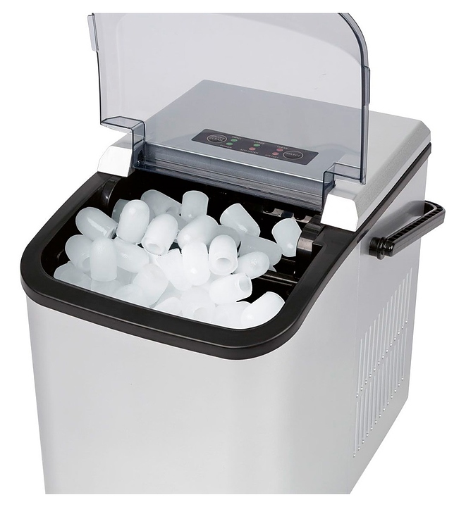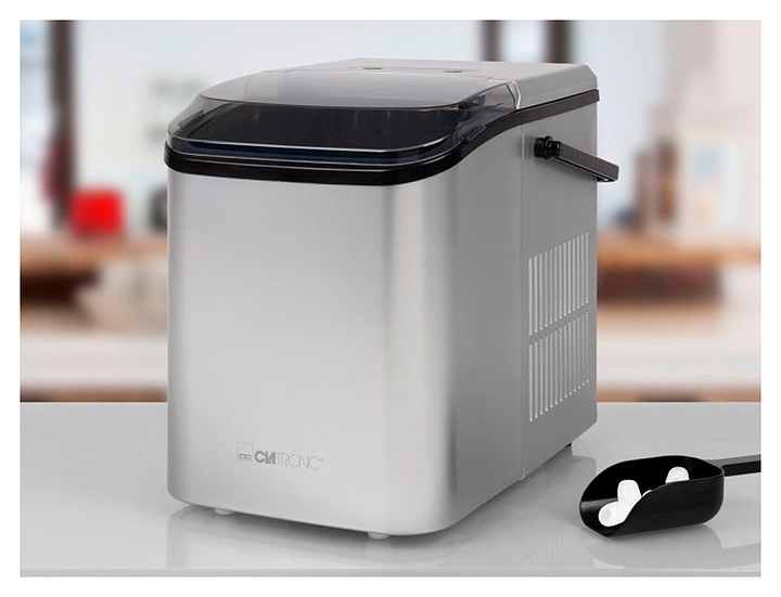 Льдогенератор Clatronic EWB 3785 silber предназначен для производства пальчикового льда, используемого для охлаждения напитков в офисах, кемпингах и домашних условиях. Модель оснащена компрессорной системой охлаждения, расположенной сверху рабочей камерой откидной крышкой, кабелем питания с вилкой, панелью управления с мембранной клавиатурой и контрольными индикаторами. Корпус выполнен из пластика с серебристой поверхностью, рукоятка, контейнер и совок – из черного пластика. В комплект поставки входят перфорированный контейнер с ручками и совок для льда. Особенности: