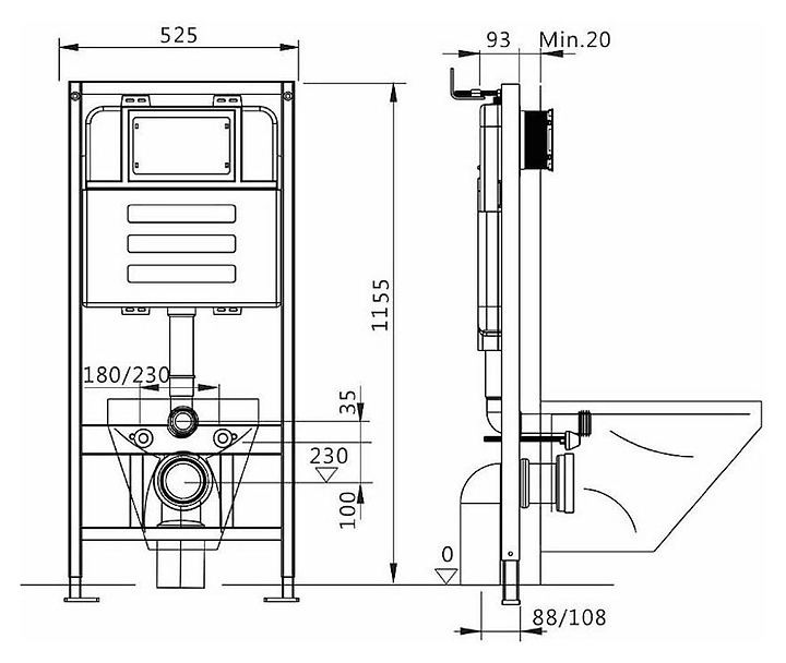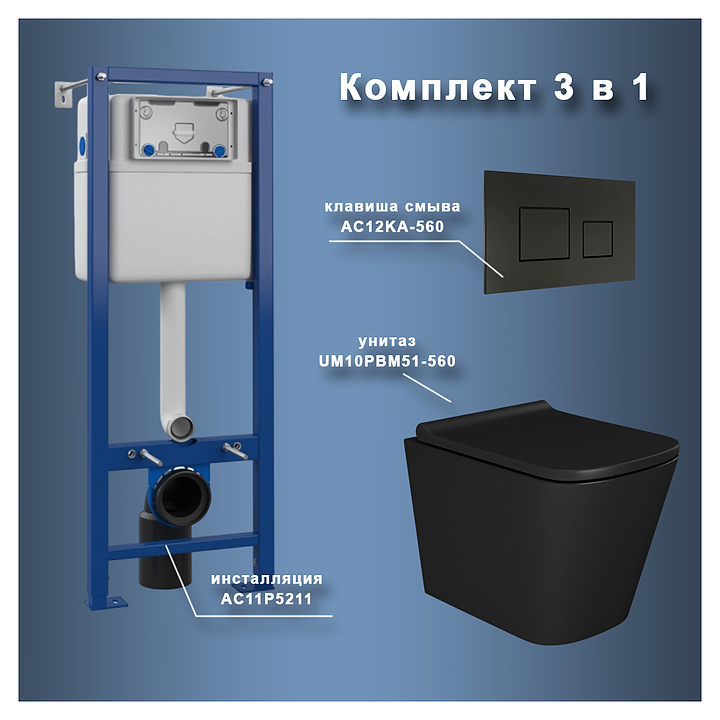 Унитаз подвесной с инсталляцией, клавишей смыва и сиденьем Maretti Umbria UM51KA56052 черный