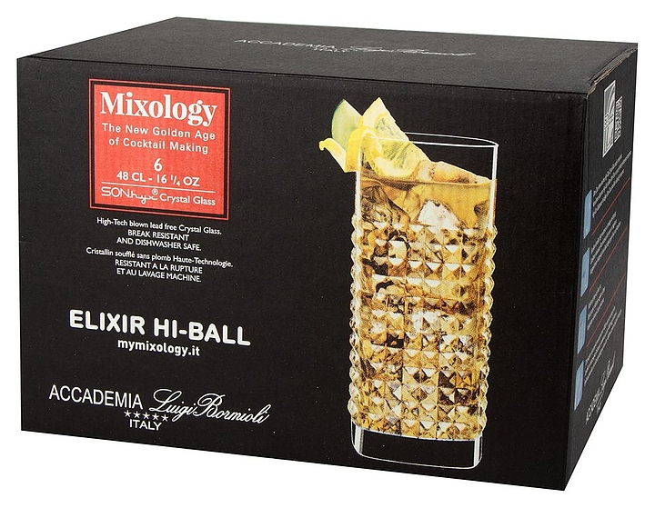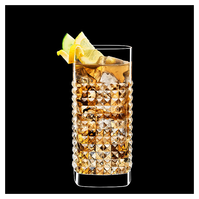 Стакан Хайбол Luigi Bormioli Mixology Elixir РМ1029/12419/01 используется на предприятиях общественного питания и в домашних условиях для подачи коктейлей с содовой и других напитков. Mixology – коллекция роскошной посуды и барных принадлежностей, изготовленных для оптимизации приготовления и подачи смешанных напитков. Высокая емкость квадратно ориентированной формы оснащена утолщенным донышком и декорирована многогранным паттерном в виде мелких пирамидальных выступов на внешней поверхности стенок. Изделие выполнено из высотехнологичного хрустального стекла. Особенности: