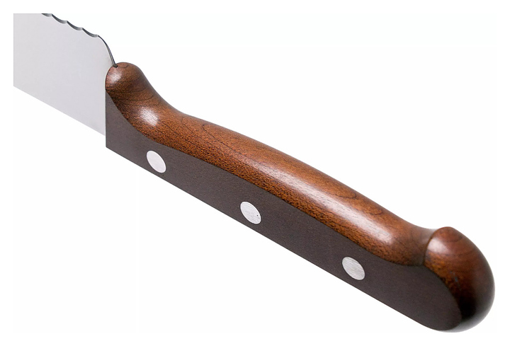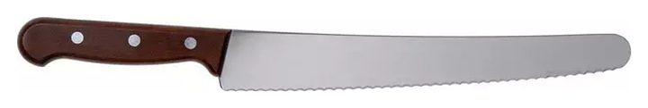 Кондитерский нож Victorinox 5.2930.26 Rosewood используется для разрезания бисквитных коржей в процессе приготовления тортов, а также нарезания на куски хлебо-булочных и кондитерских изделий на предприятиях общественного питания и в домашних условиях. Модель оснащена лезвием с зубчатой режущей кромкой. Клинок выполнен из высококачественной мартенситной нержавеющей стали с полированной поверхностью, рукоятка – из прочной модифицированной древесины в коричневых тонах. Особенности: