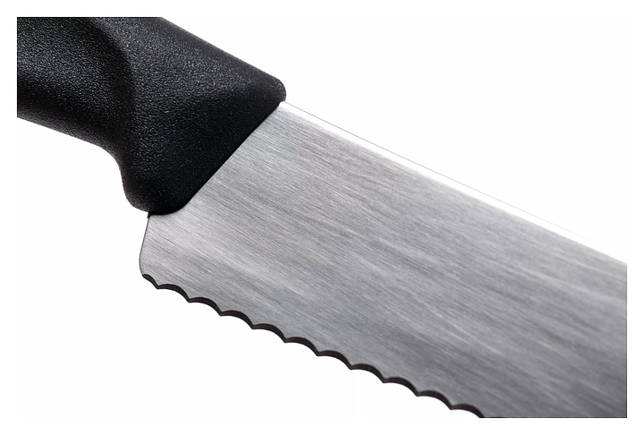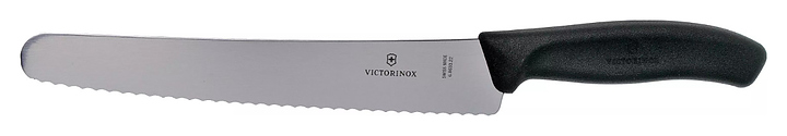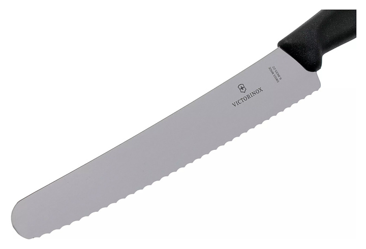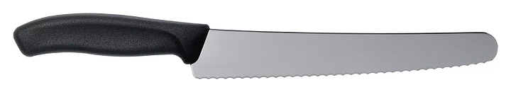 Нож Victorinox 6.8633.22B Swiss Classic используется для нарезания на куски хлебо-булочных и кондитерских изделий на предприятиях общественного питания и в домашних условиях. Модель оснащена лезвием с зубчатой режущей кромкой. Клинок выполнен из высококачественной мартенситной нержавеющей стали с полированной поверхностью, рукоятка – из термопластичного эластомера (TPE) черного цвета. Особенности: