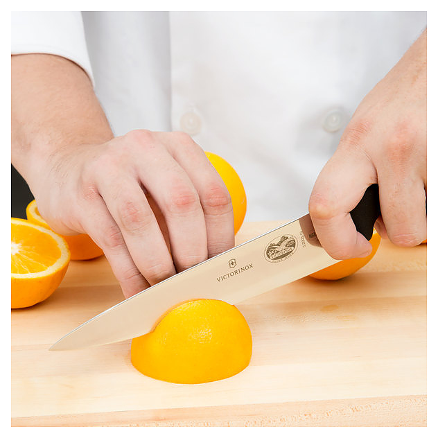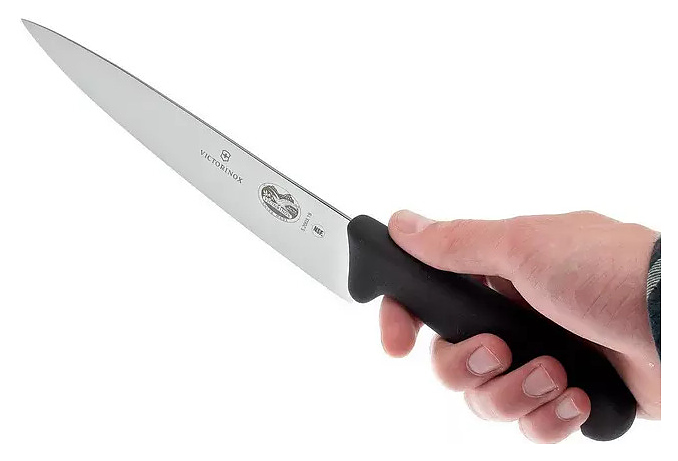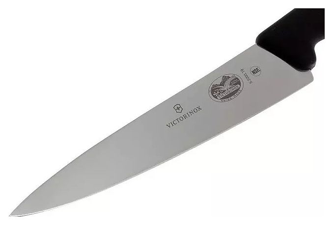 Поварской шеф-нож Victorinox 5.2003.19 Fibrox используется для быстрой нарезки и измельчения различных продуктов на предприятиях общественного питания и в домашних условиях. Модель оснащена лезвием с прямой режущей кромкой и острым клиновидным наконечником. Клинок выполнен из высококачественной мартенситной нержавеющей стали с полированной поверхностью, рукоятка – из комбинированного полимера фиброкс: твердая внутренняя часть – из полипропилена (PP), внешняя – из термопластичного эластомера (TPE) черного цвета. Особенности: