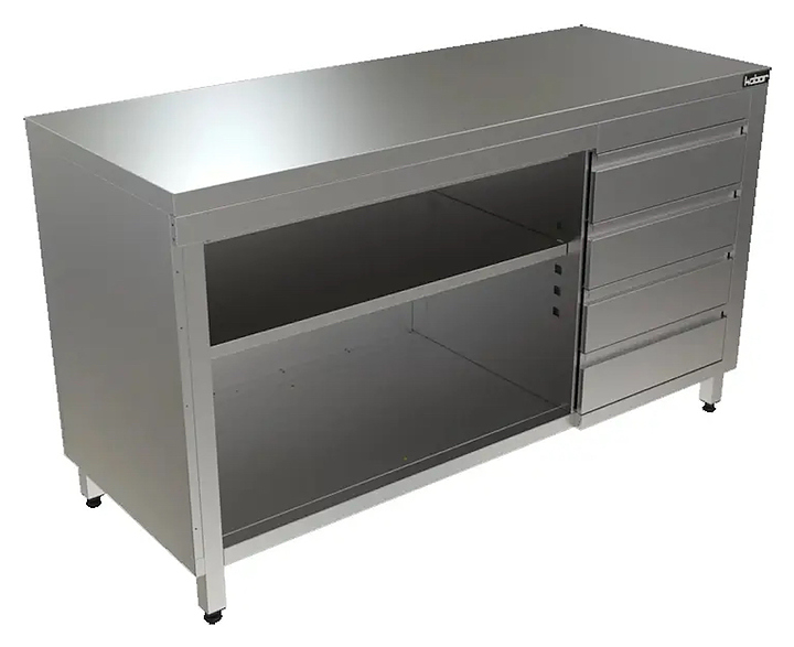 Стол-тумба Кобор СТ/1-100/70/О произведен из высококачественной нержавеющей стали, что позволяет использовать предмет в различных цехах. Модель оснащена полкой и 4 ящиками. Во избежание прогибов столешница усилена листом ЛДСП. Ножки изделия регулируются по высоте, для исключения проблем с неровным напольным покрытием, предотвращая наклон рабочей поверности. Разборный каркас и столешница выполнены из нержавеющей стали AISI 430. Внимание! Информация о товарах, размещенная на сайте, не является публичной офертой, определяемой положениями Части 2 Статьи 437 Гражданского кодекса Российской Федерации. Производители вправе вносить изменения в технические характеристики, внешний вид и комплектацию товаров без предварительного уведомления. Уточняйте характеристики у наших менеджеров перед оформлением заказа. |
