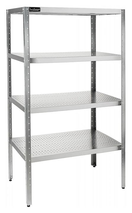 Стеллаж Кобор СКП-150/40 предназначен для хранения посуды, кухонной утвари и сухих продуктов на предприятиях общественного питания, торговли и в промышленно-производственных помещениях. Каркас выполнен в виде уголка 40х40 мм из оцинкованной стали, перфорированные полки - из нержавеющей стали AISI 430. Уникальная система крепления полок обеспечивает жёсткость конструкции стеллажа. Ножки регулируются по высоте, что помогает избежать неустойчивости рабочей конструкции. Опоры регуляторов высоты не подвержены коррозии во влажной среде. При необходимости конструкция может быть полностью разобрана. Видео
