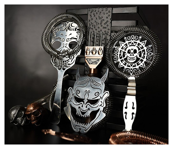 Стрейнер P.L.- Barbossa Skull CTSN0024-SS используется в барах, ресторанах и на других предприятиях общественного питания для отсеивания крупных частиц льда или кусочков фруктов при переливании коктейля из шейкера в бокал. Модель оснащена перфорированной головкой в форме черепа с фильтрующей пружиной. Изделие выполнено из нержавеющей стали. Дополнительные характеристики: