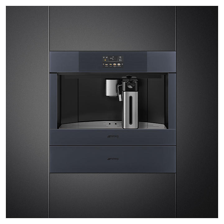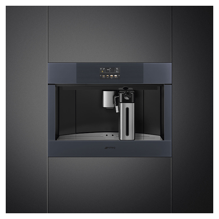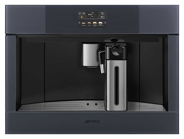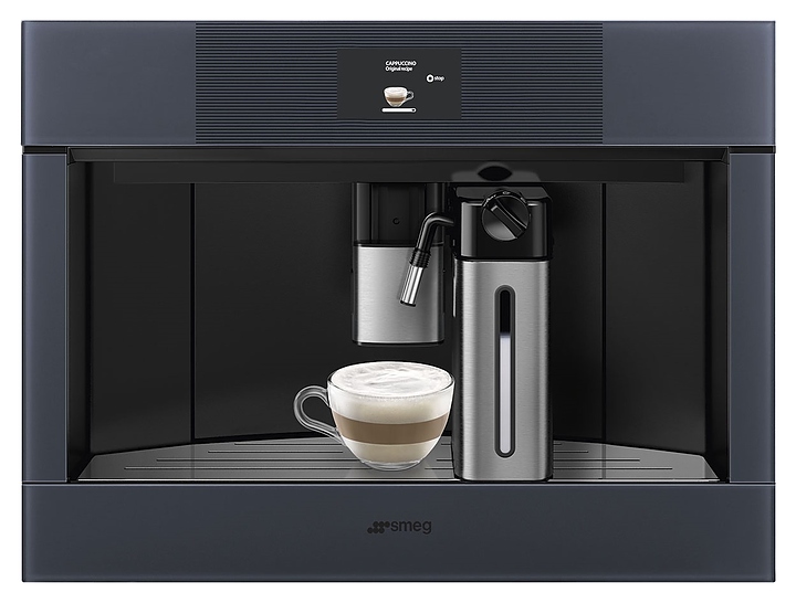 Встраиваемая кофемашина SMEG CMS4104GRU предназначена для приготовления кофе и напитков на его основе в домашних условиях. Модель оснащена встроенной кофемолкой с коническими жерновами, высокоэффективным насосом, системой нагрева с термоблоком и парогенератором, кабелем питания, расположенным на верхней фронтальной панели полноцветным сенсорным TFT дисплеем управления и индикации с символьными, графическими, цифровыми и текстовыми сегментами. Фронтальные панели выполнены из стали с глянцевым покрытием серого оттенка Neptune Grey, нагревательная пластина – из алюминия, жернова и емкость термографина – из нержавеющей стали.