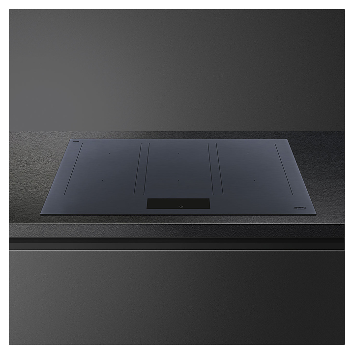 Индукционная варочная панель SMEG SIM1964DG предназначена для приготовления большого ассортимента блюд в домашних условиях. Принцип работы основан на непосредственном нагреве металлической посуды создаваемыми высокочастотным магнитным полем индуцированными вихревыми токами. Модель оснащена 6 варочными зонами, сенсорной панелью управления, 7 цифровыми дисплеями с индикацией белого цвета и кабелем питания. Рабочая поверхность выполнена из высококачественной стеклокерамики Eclipse серого оттенка Neptune Grey с сериографией черного цвета.