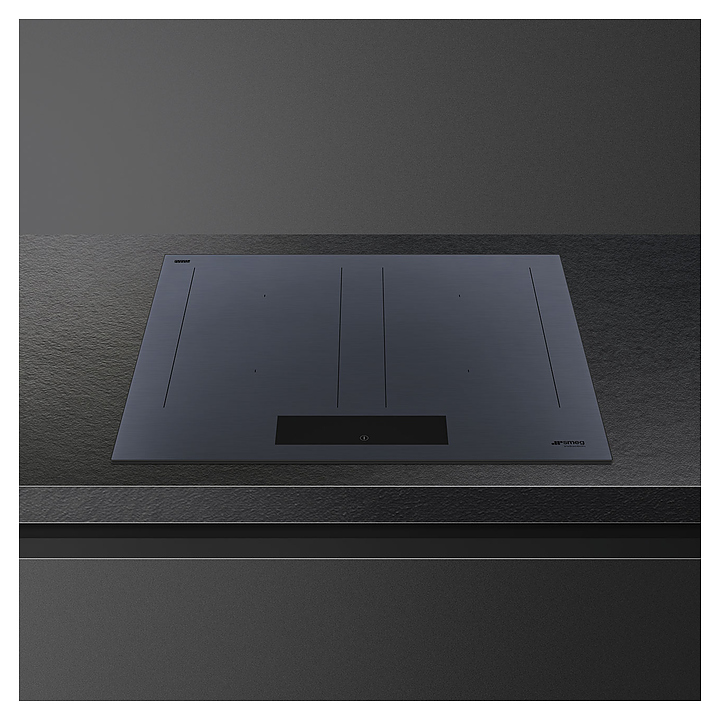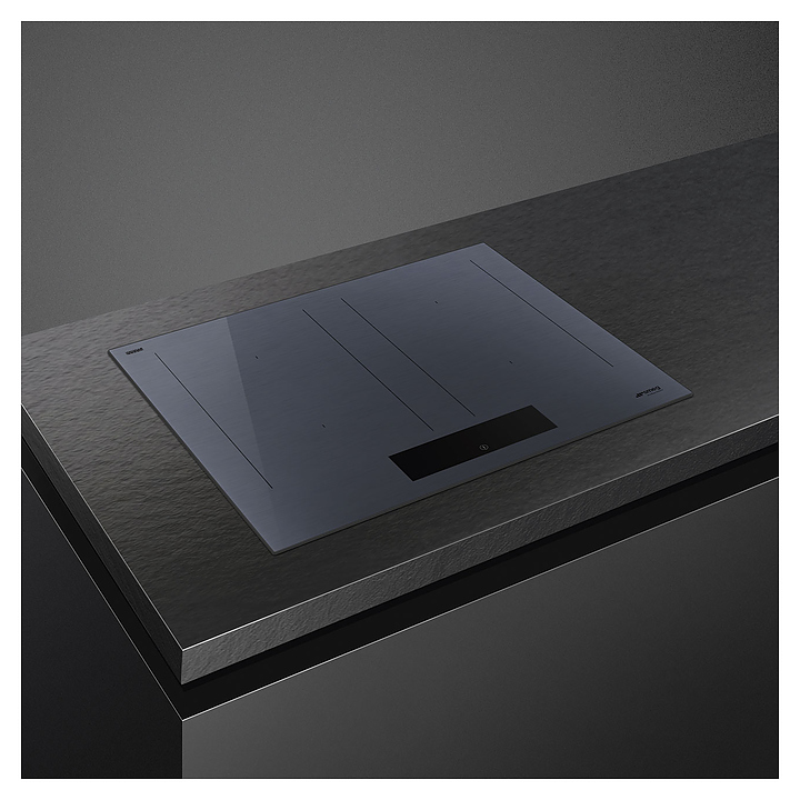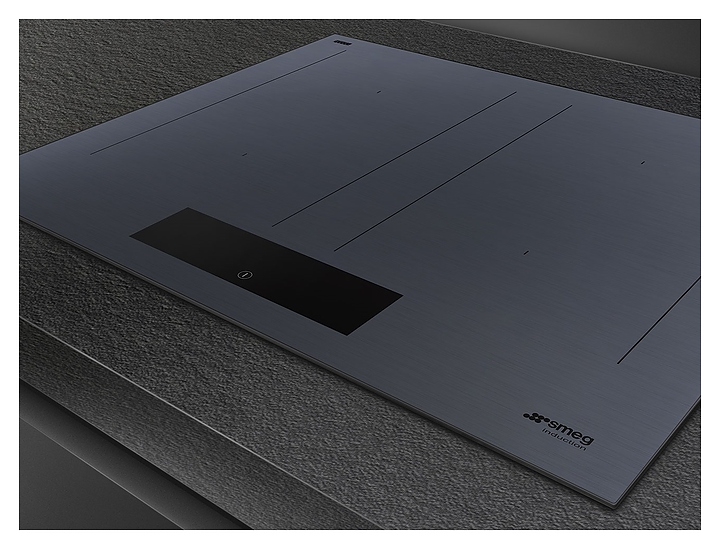 Индукционная варочная панель SMEG SIM1644DG предназначена для приготовления большого ассортимента блюд в домашних условиях. Принцип работы основан на непосредственном нагреве металлической посуды создаваемыми высокочастотным магнитным полем индуцированными вихревыми токами. Модель оснащена 4 варочными зонами, сенсорной панелью управления, 5 цифровыми дисплеями с индикацией белого цвета и кабелем питания. Рабочая поверхность выполнена из высококачественной стеклокерамики Eclipse серого оттенка Neptune Grey с сериографией черного цвета.