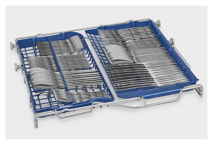 Лоток Flexi Duo для столовых приборов, чашек и другой мелкой посуды: 2 отдельных подвижных модуля на направляющих плавного хода Easy Glide