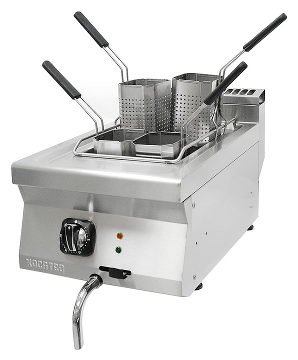 Макароноварка Kocateq MCEP47 используется отдельно или в составе тепловой линии для отваривания и размораживания кукурузы, фрикаделек, макаронных изделий, пельменей, вареников, овощей, фруктов и прочих продуктов на предприятиях общественного питания и торговли. Модель оснащена термостатом для регулировки температуры и световыми индикаторами подключения к сети и нагрева. Корпус выполнен из нержавеющей стали. В комплект поставки входят 4 хромированные корзины, крышка и сетка закрывающая ТЭНы. Особенности: