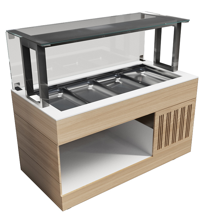 Холодильный салат-бар Astropit СБХСН41-001 предназначен для кратковременного хранения и демонстрации салатов и других готовых блюд в составе линий раздач на предприятиях общественного питания. Модель оснащена тумбой с нишей, LED-подсветкой, фронтальным экраном, колесами, 2 из которых с тормозами и смещенной полкой в основании ниши для хранения инвентаря. Тумба оклеена пластиком и выполнена из МДФ со скрытым крепежом и белого камня. Гастроемкости в комплект поставки не входят и приобретаются отдельно. Внимание! Информация о товарах, размещенная на сайте, не является публичной офертой, определяемой положениями Части 2 Статьи 437 Гражданского кодекса Российской Федерации. Производители вправе вносить изменения в технические характеристики, внешний вид и комплектацию товаров без предварительного уведомления. Уточняйте характеристики у наших менеджеров перед оформлением заказа. |