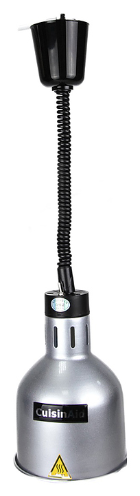 Подвесной подогреватель CuisinAid CD-A032SIL используется на предприятиях общественного питания и торговли для поддержания тарелок, готовых блюд и продуктов в разогретом состоянии с помощью инфракрасного излучения. Модель оснащена тумблером-выключателем. Корпус выполнен из металла с внешним покрытием серебристого оттенка. В комплект поставки входят лампа и набор крепежа. Дополнительные характеристики: