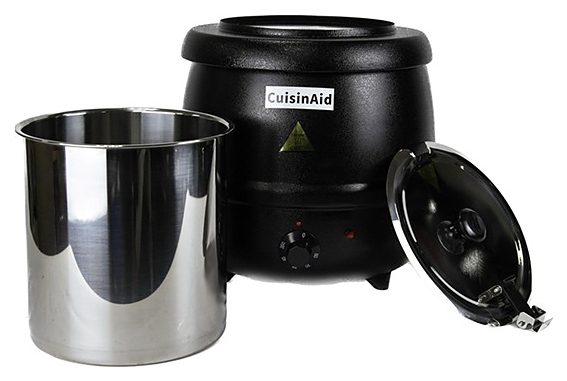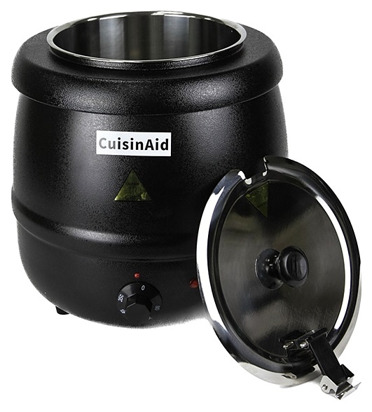 Электрический мармит CuisinAid CD-83010SP используется на предприятиях общественного питания и торговли, мероприятиях с организацией шведского стола для поддержания в горячем состоянии супов, бульонов и других жидких продуктов. Модель оснащена электромеханическим управлением. Корпус черного цвета выполнен в форме горшочка. Особенности: