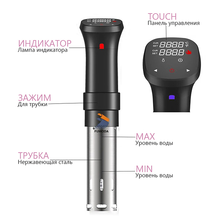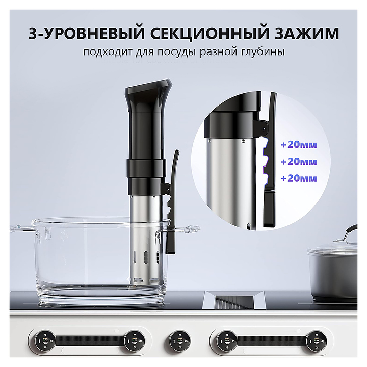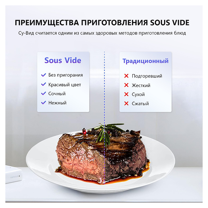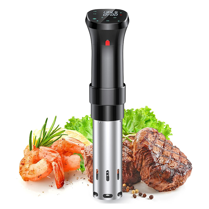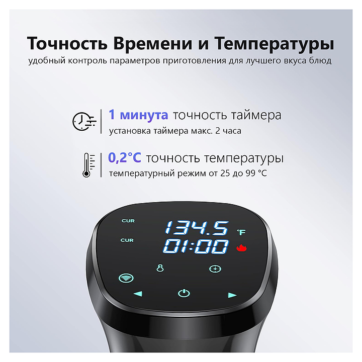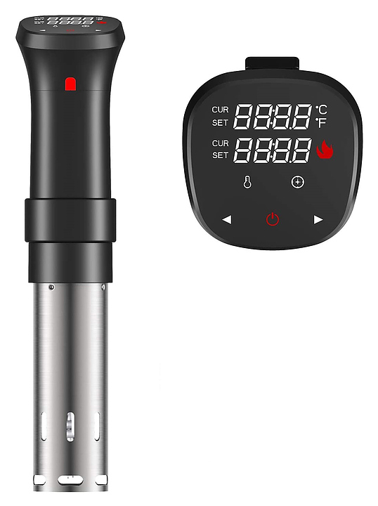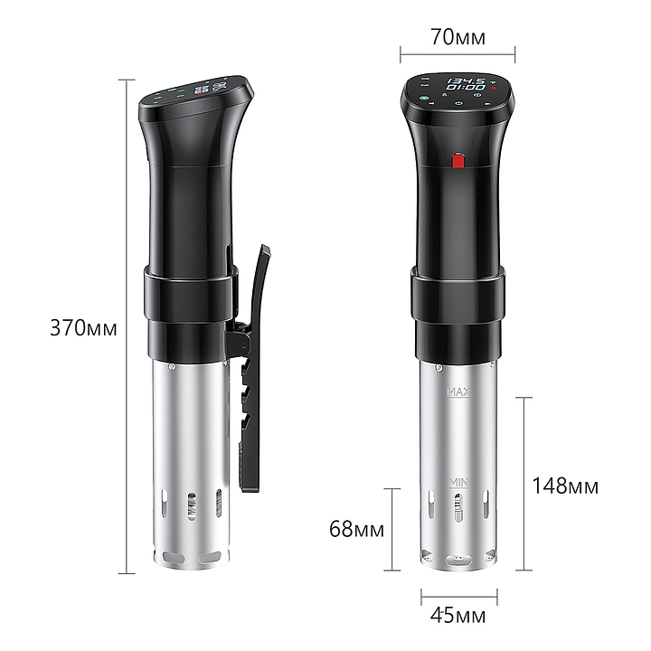 Погружной термостат CuisinAid CD-SV805 предназначен для приготовления широкого спектра блюд по технологии Sous Vide, что позволяет сохранить в продуктах все питательные вещества, витамины и минералы и обеспечить насыщенный вкус, в частных домах и квартирах. Модель оснащена рукояткой с удобным захватом и сенсорной панелью управления с 2 цифровыми дисплеями. Особенности: