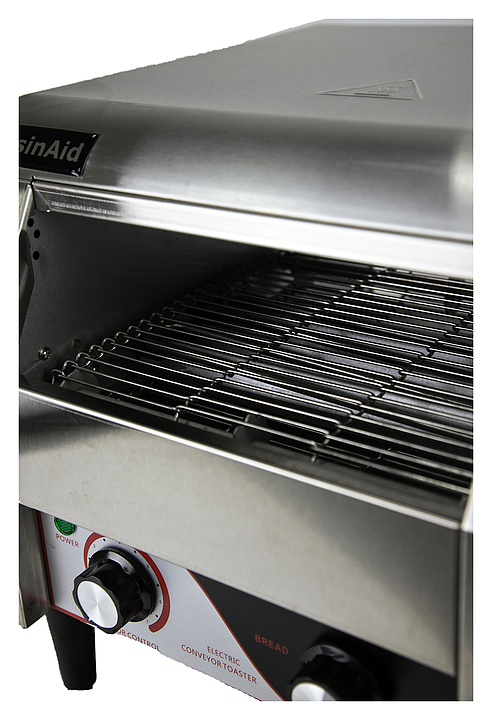 Конвейерный тостер CuisinAid CD-CT-300 используется на предприятиях общественного питания и торговли для поджарки и подогрева кусочков хлеба, а также приготовления горячих бутербродов. Модель оснащена верхним и нижним нагревательными элементами и электромеханической панелью управления. Особенности: