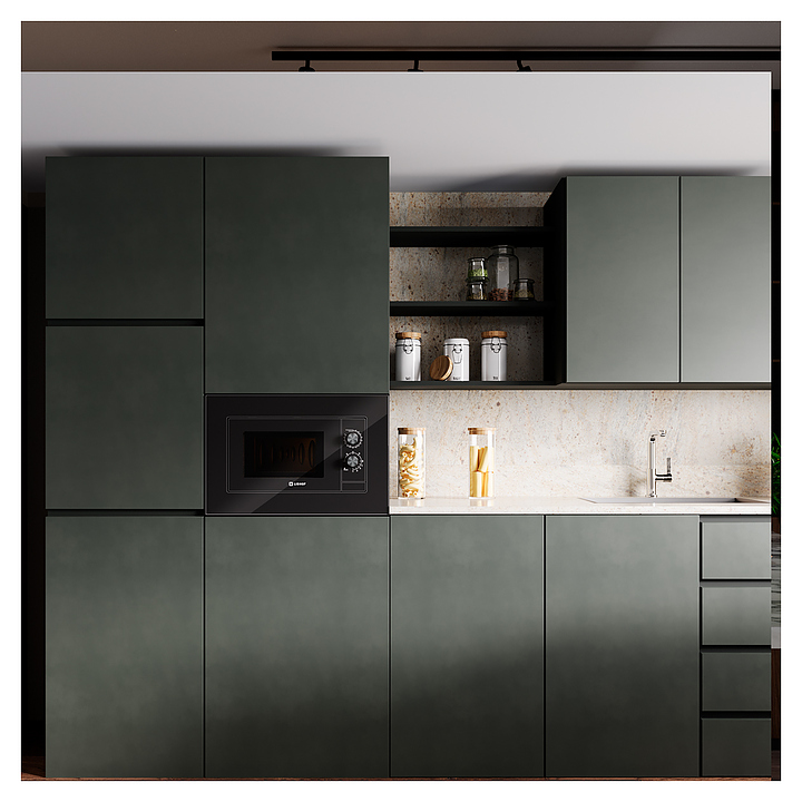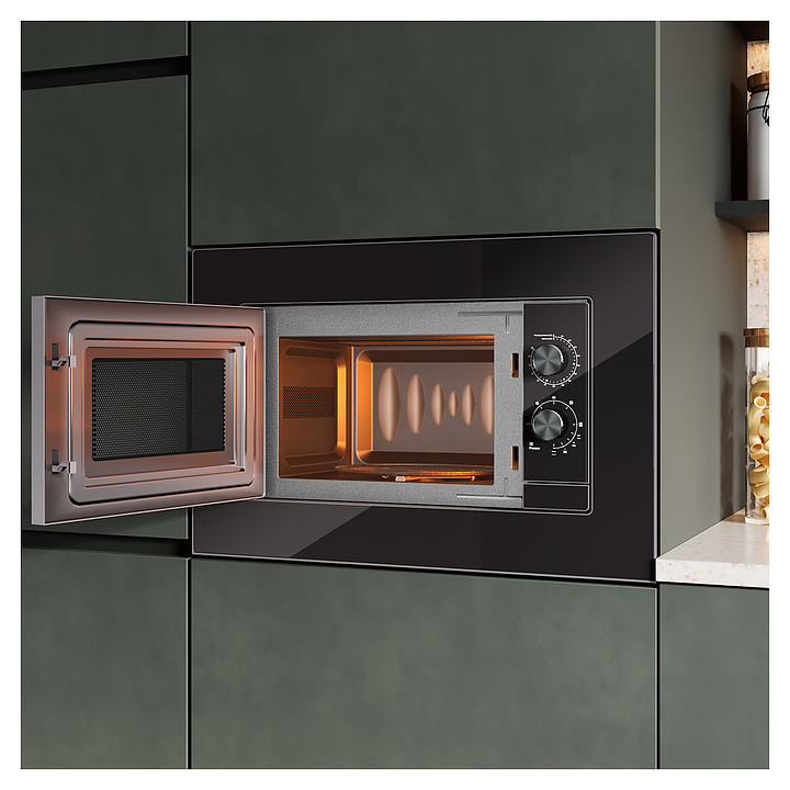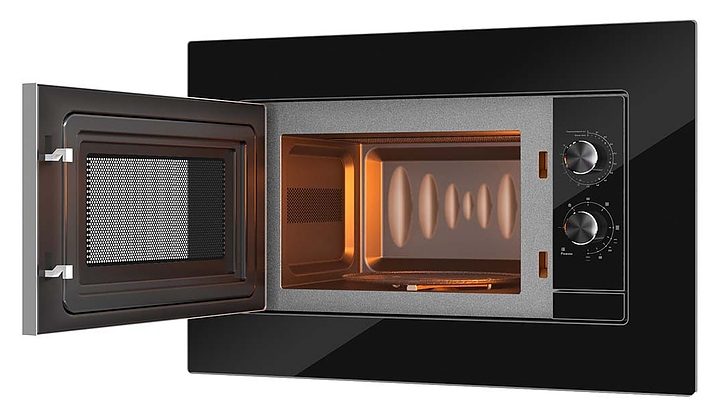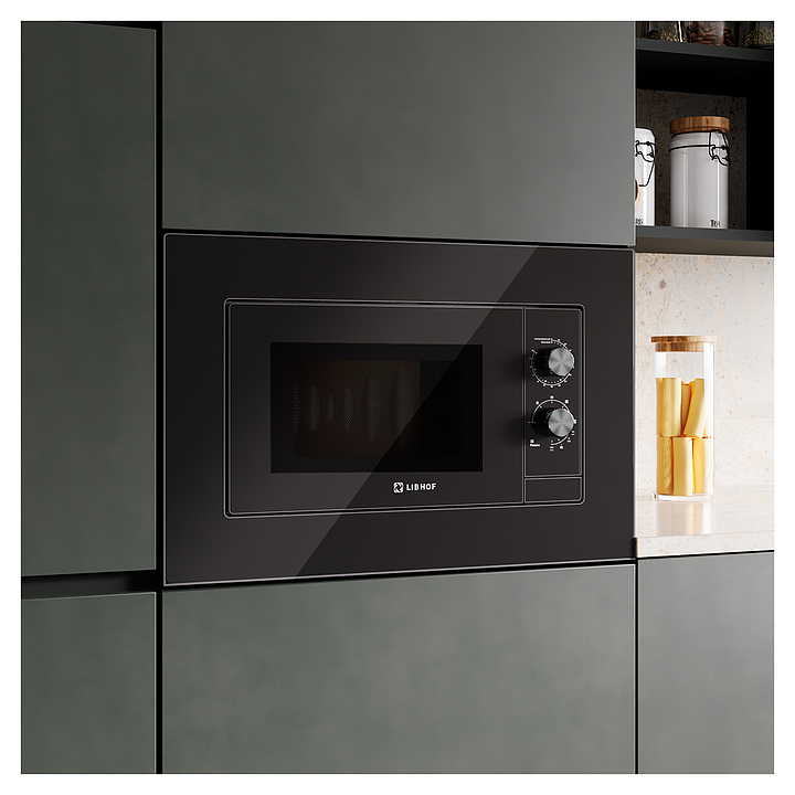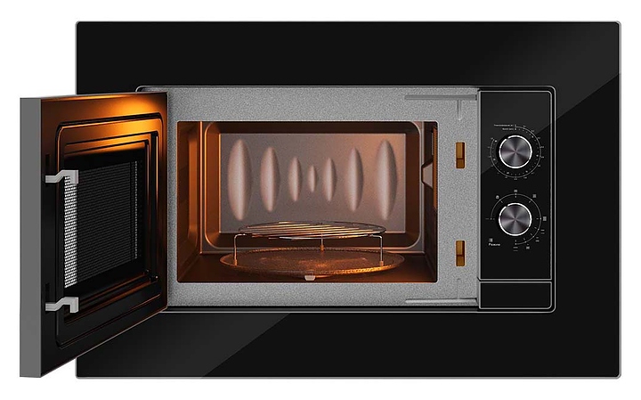 Микроволновая печь Libhof MWB-5020B предназначена для приготовления пищи, подогрева готовых блюд и ингредиентов, а также размораживания полуфабрикатов в частных домах, квартирах, отелях и офисах. Модель оснащена поворотными переключателями, кварцевым грилем, навесной дверцей и внутренней подсветкой. Фасад выполнен из черного стекла, рабочая камера - с антипригарным покрытием. В комплект поставки входят вертел, вращающаяся тарелка из боросиликатного стекла и металлическая подставка для гриля. Особенности: